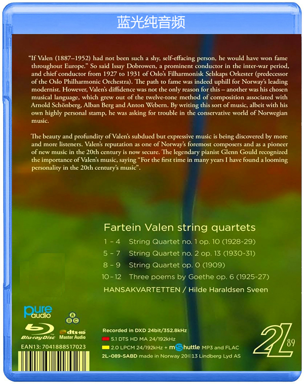 Hansakvartetten - Fartein Valen String Quartets 2011 Blu-ray Audio
