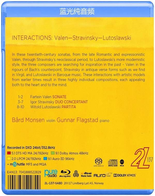 在这些二十世纪的奏鸣曲中,从瓦伦的晚期浪漫主义,到斯特拉文斯基的新古典主义时期,再到罗托拉夫斯基的现代主义风格,这三位作曲家在追寻旧时的灵感。本专辑展现了瓦伦的双重对立风格,在音乐作品《Virgil》中我们可以欣赏到斯特拉文斯基的复古风格,在《Lutoslawski》中我们可以感受到巴洛克音乐的痕迹。作曲家的思想与早期音乐传统的碰撞使得本张专辑的音乐作品不仅深入人心,更有启人深思的力量。