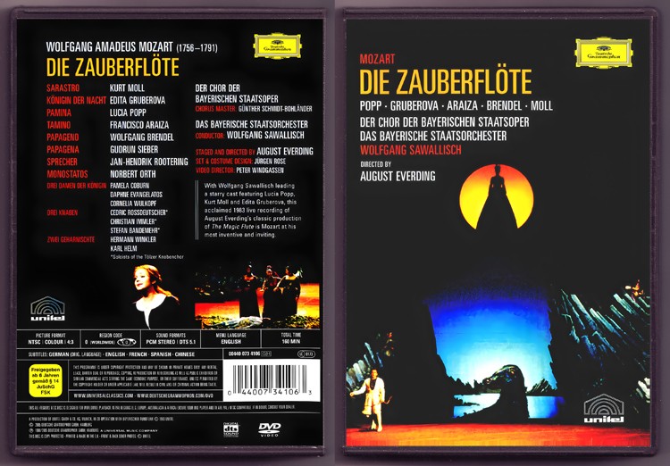 Mozart's popular opera "The Magic Flute" conducted by Wolfgang Sawallisch - now available on Blu-ray for the first time! recorded live in 1983, this production from the Bavarian State Opera features one of the most famous operas ever - Wolfgang Amadeus Mozart's "The Magic Flute" in August Everding's production. Edita Gruberova as the world's most coveted queen of the night, Francisco Ariza as one of the most famous taminos of our time, along with other world stars of opera (Kurt Moll, Lucia Popp, Wolfgang Brendel, and others) make this production a feast for the eyes and ears. Framing and congenially directing this ensemble is Wolfgang Sawallisch. "Show the serious - but don't forget the humor" - with this attitude Everding proves his genius in the field of opera direction in this unique production. This Magic Flute is an absolute must for all opera fans.