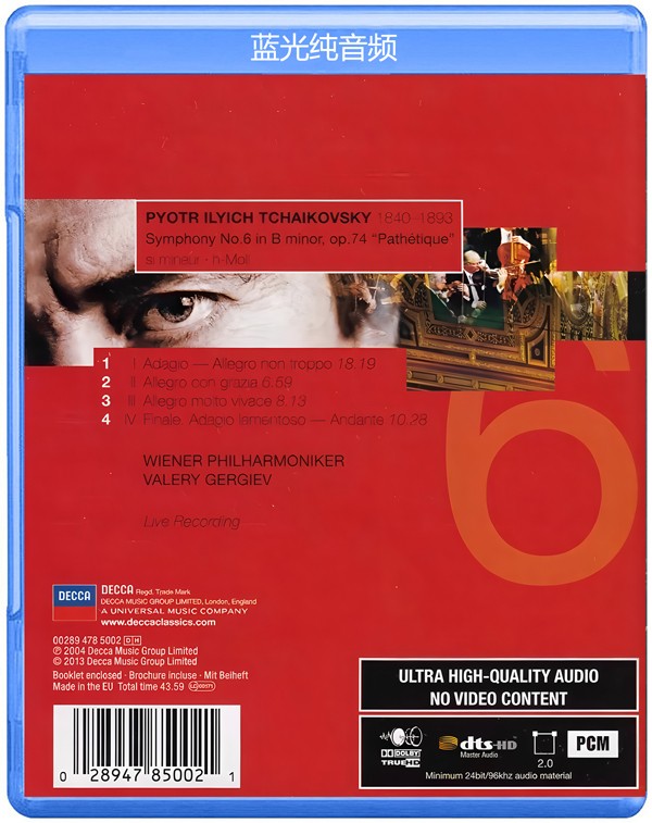 Pure Audio Blu-ray Tchaikovsky: Symphony No.6 – "Pathetique" (2004) Blu-ray Audio LPCM 2.0 DTS-HD MA 2.0 Dolby TrueHD 2.0 所有评价(0)